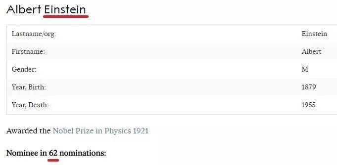 顺便看看,什么叫争议:爱因斯坦,被提名62次,获奖1次。简直就是黄袍加身啊!