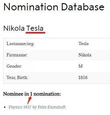 特斯拉还获得了一次物理学奖的提名,尽管诺奖提名不是什么衡量标准,但多少也是一个参考。谣言里说特斯拉拿了N次诺奖及提名,他们显然不知道官网是可以查询提名和获奖次数的。