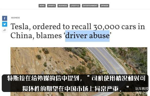 并称,针对中国市场的召回动作,问题不在特斯拉车型的本身,问题在于中国司机。