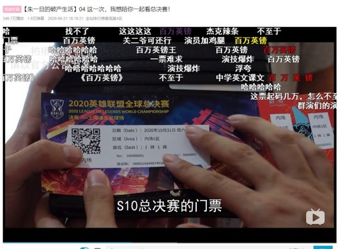 9月21日,朱一旦作为B站UP主上传了一个名为《朱一旦的破产生活》的系列视频,至今播放量是348万。只不过这次他的主题是——朱总和英雄联盟S10总决赛的故事。