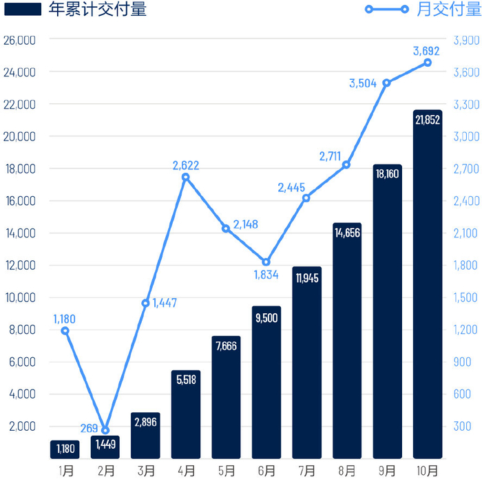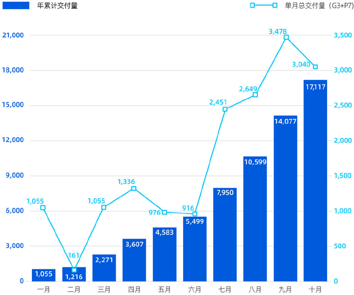 小鹏汽车单月总交付量达到3040台,同比增长229%。尽管受国庆“黄金周”影响,环比9月交付量有所下降,但销量表现整体上连续两个月超过3000台。