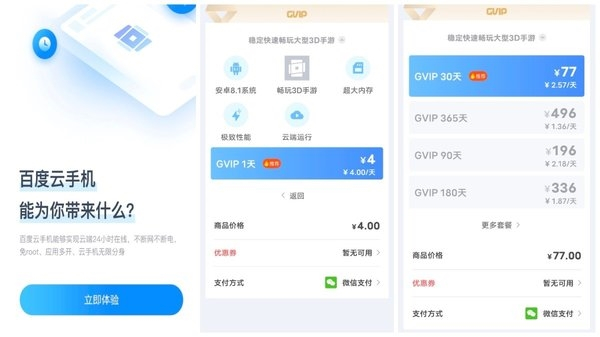 原标题:百度推出云手机旗舰产品,日卡4元,月卡77元