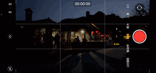 在视频拍摄上,iPhone 12 Pro主摄的f1.6大光圈在暗夜环境中相比超广角的差别也是非常明显的,通过下面这个取景对比可以明显看到差异,从超广角切换到主摄,整个环境瞬间被提亮,这就是为什么f1.8和f1.6虽然只相差0.2级的光圈值,仍然很重要的原因。