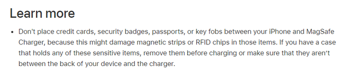 这本来是一个方便的功能,但是在苹果最新的一份文档中显示,MagSafe可能会让你的一些卡片消磁。