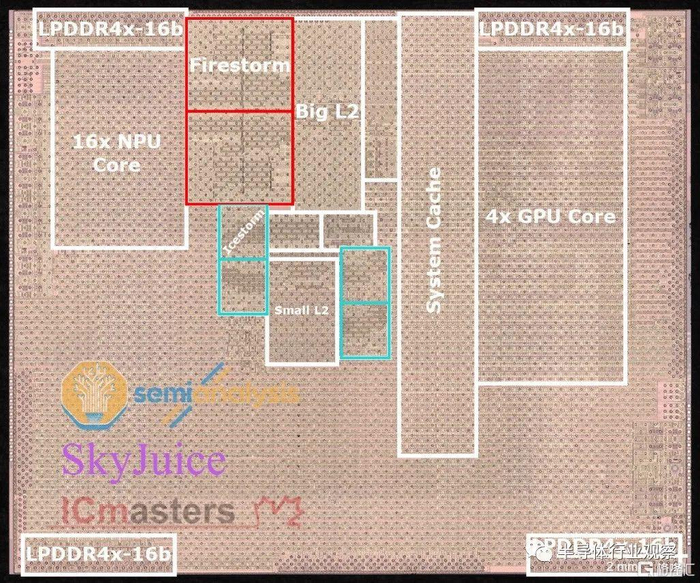 Apple A14 Bionic的最大突破在于它向着业界最小的5nm制造节点发展。但有趣的是,分析表明,向5nm的迁移仅使芯片尺寸缩小了1.49倍,而不是TSMC声称的5nm缩小了1.8倍。这主要是因为缩小芯片的内部工作变得越来越困难,尤其是在内存方面。无论如何,这并不是苹果最新芯片唯一的新事物。