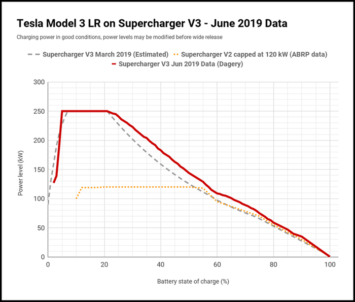 最后再说一件事,之前有媒体用电池容量52kWh的2019款的Model 3对比测试过特斯拉250kW超级快充桩和150kW快充桩的充电速度,从3%电量充到100%,250kW超级快充桩耗时1小时6分钟,而150kW快充桩耗时1小时8分钟。