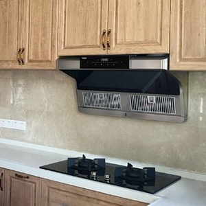 目前,在家居装修设计中,使用这款抽油烟机的占多数。“顶吸式”抽油烟机安装在灶台上方,通过上面的排风扇把油烟抽走,款式有薄型、深型及介于两者之间的半深型等。顶吸式抽油烟机的优点是造型多样、清洗方便、价格比较低。但是缺点是抽油烟的效果较差,油烟容易分散,炒菜时会带来碰头、滴油等诸多不便,占据空间也较大。