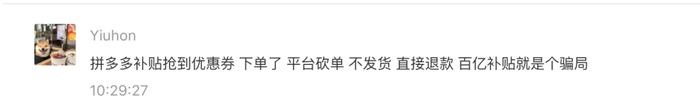 在每一篇拼多多文章的留言区,都会有那么几个读者表示拼多多垃圾,因为他们买了百亿补贴的商品却不发货,他们觉得这就是一个骗局。