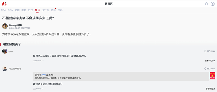 库克当然不会从拼多多进货,既没必要还砸招牌,另一个原因是库克也没办法从拼多多进货,因为拼多多会砍单。