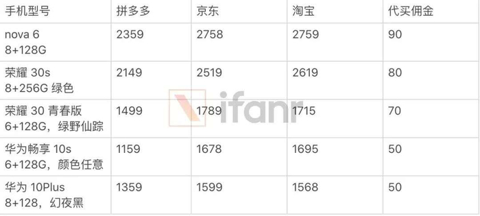 目前 X 在朋友圈已经发了 11 条类似的广告,提到的品类包含了多个型号的手机。为了方便对比,我做了一张表格整理了不同平台的价差和佣金的多少。