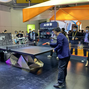 在现场可以看到,Forpheus非常专业。可以根据检测到训练者情绪,实时调整训练对打计划。包括变换路线和球种、速度,进行最优化的回球操作,让使互动者沉浸在乒乓球对打中,完全进入到精神高度集中的状态持续对练,球技得以提升。