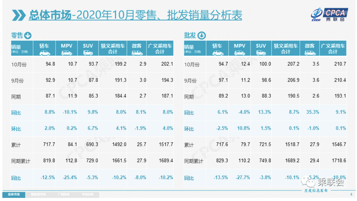11月9日,乘用车市场信息联席会(以下简称“乘联会”)发布最新数据显示,10月乘用车市场零售销量为199.2万辆,同比增长8%,实现了连续4个月8%左右的近两年高位增速。