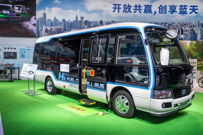 今年进博会上,丰田展台与前两届一样特设氢燃料电池技术区,展示了氢燃料电池商用车FCEV柯斯达,高压储氢罐及最新第二代燃料电池堆,还介绍了从氢的制取、运输、储存到使用等完整氢产业链的各个环节。去年,在中国全面开启推广普及氢燃料电池技术,还向其他商用车厂商提供丰田氢燃料电池组件,与北汽福田、亿华通、中国一汽、苏州金龙和上海重塑等企业合作,实现氢燃料电池车在中国更大范围的普及。此外,还与中国主要商用车制造商一汽、东风、广汽、北汽及氢燃料电池系统集成商亿华通等,联合成立了商用车用燃料电池系统研发公司,加快中国氢能社会的发展。
