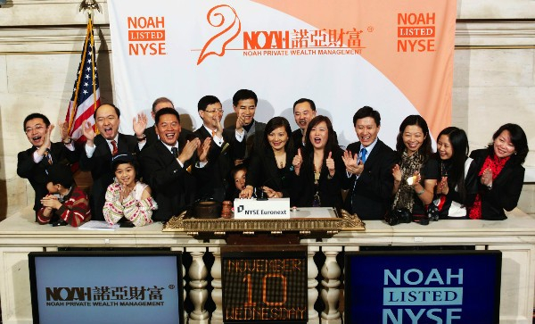2010年11月10日,诺亚财富成功登陆纽约证交所,成为第一家在美国上市的中国独立财富管理机构,透明、合规、审慎经营不再是“自律”,公司主动将自身发展、财富管理业务发展置于上市公司公开监管体系之下,开财富管理行业风气之先,同时也意味着诺亚控股开始了国际化的征程。敲钟时刻,包括汪静波、殷哲在内的几位诺亚创始人相拥而泣。从创业之初到成长为上市公司,虽然只有5年,却也是一路维艰。