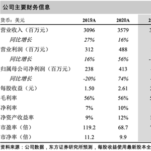 海外考培业务受公共卫生事件影响大,考试逐渐在下半年复苏,我们预计21-23E收入为2.37/2.98/3.72亿美元,yoy-36%/26%/25%。