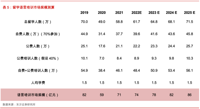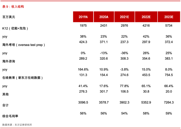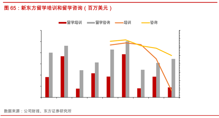 留学咨询业务同样受到的冲击较大,秋季递延收入确认减缓,我们预计21-23E收入为3.1/3.5/3.8亿美元,yoy-3.8%/15%/8%。