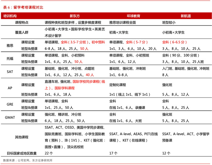 留学业务课程及班型多样,根据难度设置多梯度培训课程,国际预科项目颇具特色。1993年以海外留学语言培训起家,经过27年的发展,留学业务发展成为集留学考培、留学中介和留学后海外生活服务于一体的综合留学服务商。目前,新东方已覆盖绝大部分留学考试培训,包括TOEFL、IELTS、SAT、SSAT、AP、GRE、GMAT、ACT、IB、美国中学同步课程以及小学留学预科班等课程。从各考试培训的班型及授课方式来看,新东方班型多样,从1v1授课到40-50人班型都有覆盖;授课形式灵活,采用线下+线上的授课模式,面向基础较差自控力较弱的学生推出住宿班,针对单项薄弱同学推出线上单项课程班,课程精细化程度高,满足学生所有考培需求。