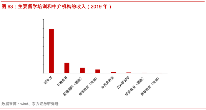 新东方行业积淀深厚,行业绝对龙头。对行业主要公司来看,新东方2020财年留学培训+咨询实现收入约为49亿元,其中留学培训业务为26亿元,留学咨询22亿元,在各个细分领域都处于龙头地位。新东方也在不断完善产业链布局,先后投资异乡好居、成立海威时代、并购斯芬克,布局留学后市场和艺考留学,巩固自身地位。