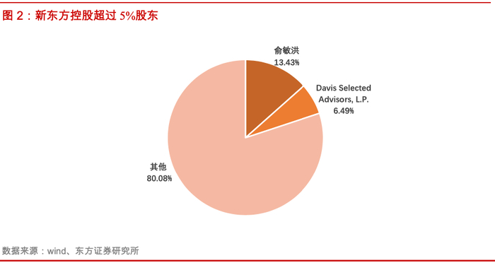 管理团队根基坚实,领导力强大。截至 2019 年 5 月 31 日,创始人俞敏洪任公司董事及董事会执 行主席,拥有 13.43%的普通股,是新东方第一大股东。首席执行官周成刚、首席财务官杨志辉分 别于 2000 年、2006 年加入新东方,带领新东方发展至今。在激励制度上,每年股权激励的摊销 额占收入比例在 1%-2%左右,以留存优质人才。从历史来看,公司在业务布局、组织结构上进行 了强有力的战略投入,管理层执行能力卓越。(周和杨的股权结构)