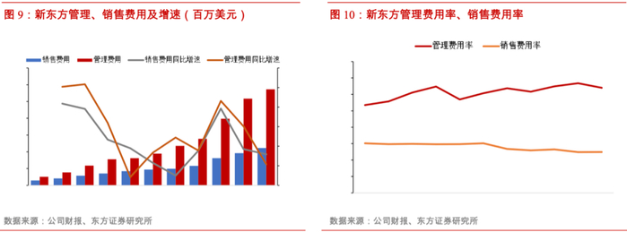 在销售费用端,前期新东方品牌规模效应带来销售费用率缓慢下降,随着公司加大线上教育的投入力度,销售费用率将会有所上升,我们预计公司21-23E销售费用率为14.4%/15.2%/15.7%。