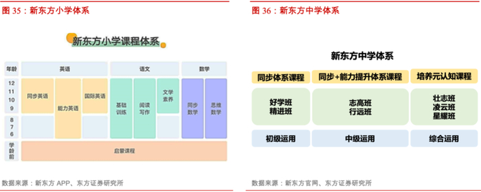 历史回顾:七步教学法和低价入口班打通了产品和商业模式,助力新东方完成全国布局。从产品结构来看,K-12课程体系在2019年搭建完成,课程主要服务中腰部学生,同时推出高端产品向上获取优质生源。
