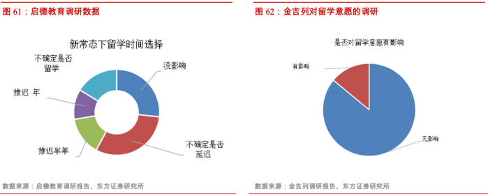 短期公共卫生事件对行业负面影响大,留学刚需向后推迟。金吉列的调研数据显示15%的家庭取消了留学计划,启德教育的调研数据显示16.3%的家庭不确定是否仍会选择留学,大部分家庭更多是延迟了留学计划,后续留学需求仍在。从国内的升学竞争程度、就业环境和长期的全球化进程来看,在公共卫生事件可控的情况下,长期的留学需求仍然稳定。