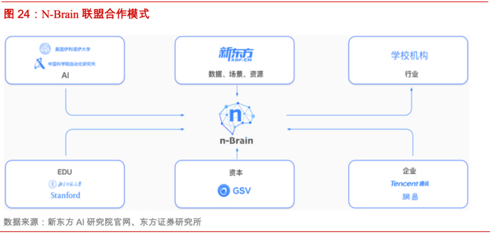 布局科技创新体系,探索教育科技深度融合。新东方于2018年成立AI研究院并发起N-Brain联盟,作为面向人工智能时代技术变革推出的重要战略级举措。在2019年,新东方旗下OK智慧教育发布了智慧教育城市解决方案,基于AI平台,以学生学习为中心,构建了涵盖教学、学习、教育管理与决策的系统化区域性发展体系。同年11月,新东方与中兴通讯、中国移动北京公司达成战略合作,共同推进5G+教育的战略布局。