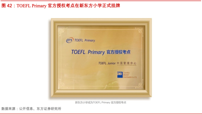 新东方小学是英美两系权威测评机构合作伙伴,少儿英语多种教材获国内首家授权。继与剑桥大学英语考评部合作“剑桥英语学习中心计划”后,新东方于2019年获得TOEFL Primary考试官方授权考点,是国内首家同时获得英系和美系权威英语测评服务机构认证的官方合作伙伴,为学生一站式完成专业系统的国际化英语学习提供可能。此外,新东方国际英语教材学乐系列产品、YLE剑桥少儿考试教材等均为国际出版机构在国内教育机构中首家授权产品,因此新东方是许多学生接触上述部分教材的唯一途径。