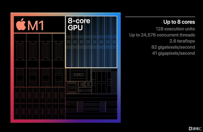 M1芯片的8核GPU同样性能强大。