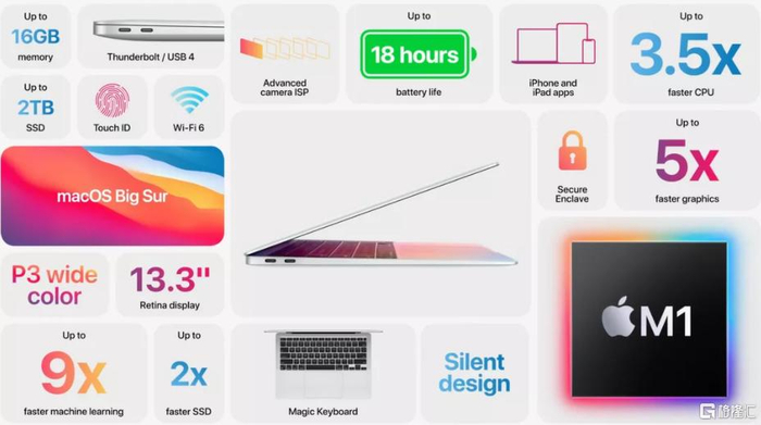 再配合专为M1芯片优化的macOS Big Sur系统,将给用户带来全新的个人电脑体验。