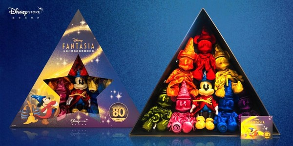 为纪念《幻想曲》上映80周年,迪士尼商店推出魔法师米奇80周年珍藏礼盒,全国限量发售1000套,供广大粉丝收藏纪念。同时,迪士尼商店还以动画中的经典元素为灵感,设计出一系列闪亮而摩登的时尚配饰 -- 从小巧精致的水桶包到大方实用的托特包 -- 为生活的每一天都增添一份魔法般的梦幻晶彩。