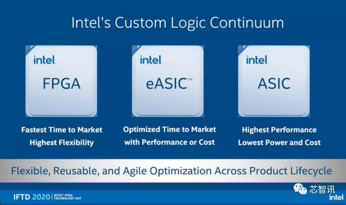英特尔强调,FPGA为客户设计提供了最强的面市速度优势和最高的灵活性,同时,ASIC和结构化ASIC设备以最低能耗与成本提供了最好的硬件优化性能。