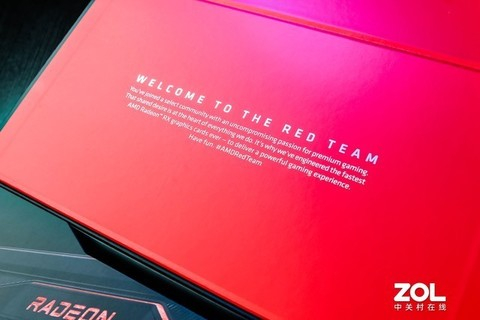 在外包装上RX 6800 XT更为精致一些,采用磁吸式的礼盒设计,打开后盖子上写着“Welcome to the red team”,盒子里面还采用了双层嵌入式的设计,四边都有倾角,相当精致。