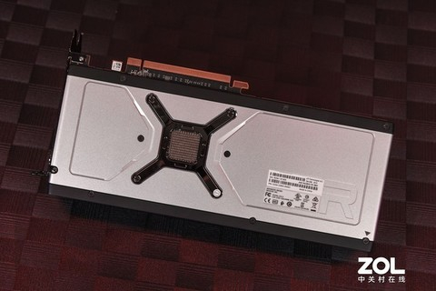 显卡背部两个型号采用相同设计,整体为银色金属背板,表面采用了磨砂工艺,右下角有大写的R作为logo标识。