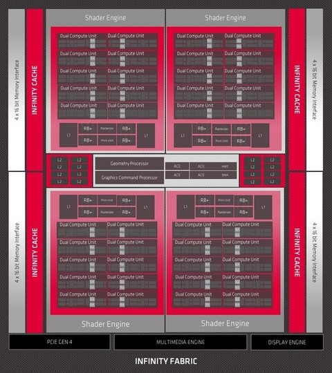 在新的RX 6000系显卡中,均带有128MB的Infinity Cache,它改变了GPU数据的传输方式,作为一个巨大的带宽放大器,这种全局缓存技术允许快速访问数据,使显存带宽具有更高的效率。