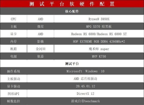 本次的测试平台我们选择了Ryzen9 5950X的CPU,主板为微星MPG X570暗黑板,以及RX 6800/6800 XT。