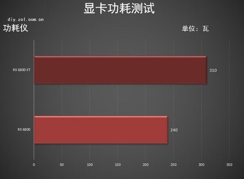 在官方资料中,RX 6800的整卡功耗为250W建议电源650W;RX 6800 XT的整卡功耗为300W建议电源750W,从实际测试结果来看,基本符合。