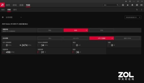 另外在AMD驱动中自带一键超频,软件会根据显卡的体质来决定超频幅度,超频后的RX 6800 XT频率提升为2474MHz(默认2250MHz),下面我们再来看下3D MARK中的分数表现。