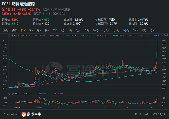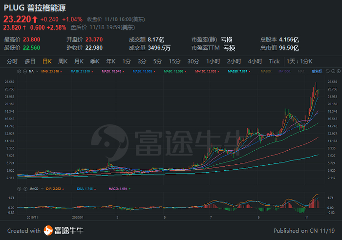 11月17日plug power宣布增发3800万股,融资近10亿美元。用于扩大燃料电池的生产。