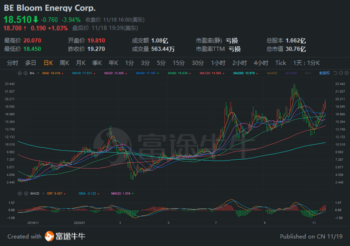 本周二上午,摩根士丹利的分析师将bloom energy的目标价下调1美元至21美元,但目前其股价还不到19美元。尽管下调目标价,分析师仍然维持其增持评级。摩根士丹利认为,bloom energy是氢能源公司中实力较强的参与者,虽然从GAAP的角度看并不亮眼,但它是近期唯一一家产生正向现金流的氢燃料电池股。
