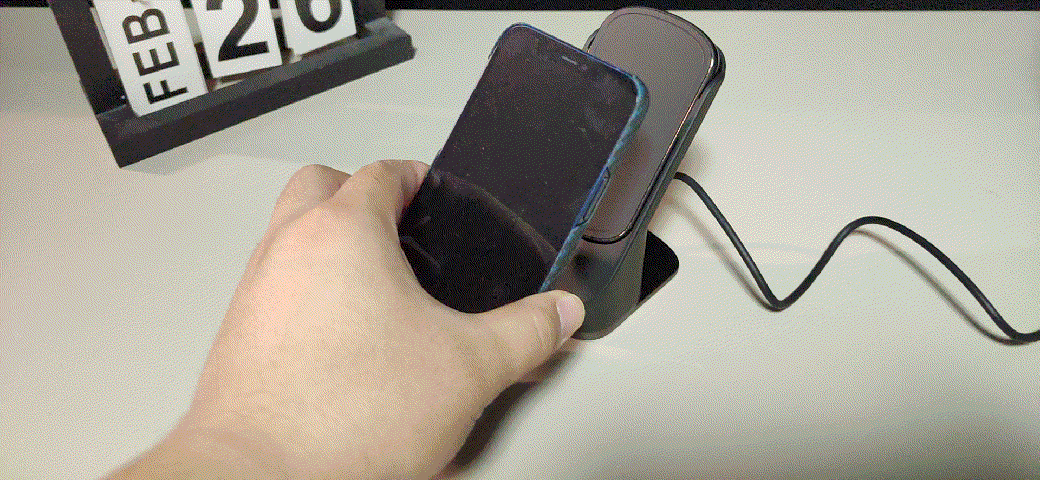 ▼并且放上去的体验很棒,不用特意找位置,直接放上去,手机就能自动吸附在上面。