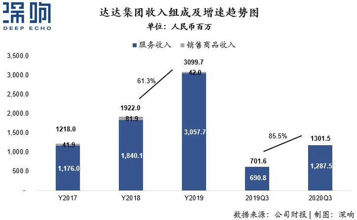 达达本季总营收为13.02亿元人民币,2019年同期为7.02亿元人民币,同比增长85.5%。