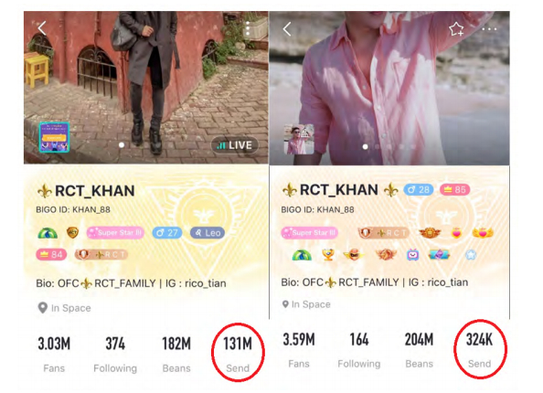 有时,他们的收入甚至远远超过了他们的总收入。然而,由于Bigo不仅改变了头部虚假用户的身份,而且还改变了打赏者帐户的统计信息,因此很难进行精确的计算。