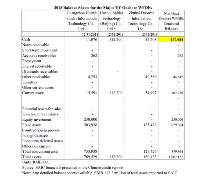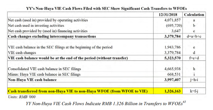 此外,我们认为YY向其外商独资企业转让了约13.26亿元(其中大部分将被非法转移给其海外外商独资企业),或者说外商独资企业的现金根本不存在。