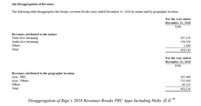 然而,根据2019年6月向美国证券交易委员会提交的一份6-K报告中显示,有一项1.66亿美元的销售额来自中国,约占Bigo 2018年总收入的三分之一。