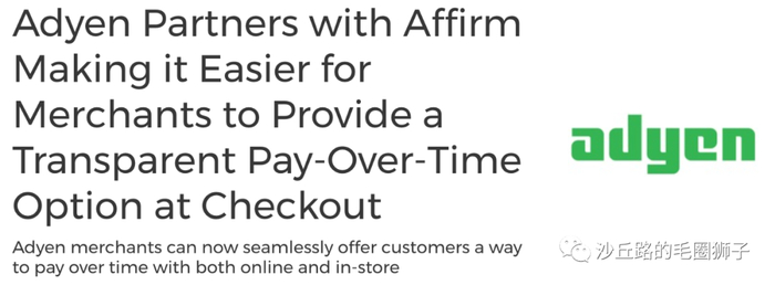 尽管Affirm上市的信息在美国时间周三才公布,但早在周二Affirm与Adyen宣布的战略合作消息就已经预示着Affirm要有大动作了。