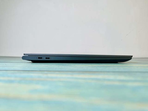 侧面是两个独立雷电4,40GBPS,右边是电源键,USB-A接口,还有骨灰级的3.5mm耳机接口。为了做到极致的轻薄而做出的牺牲,而YOGA 14S 这台电脑有两个雷电四的接口,不但支持快充,而且保证在充电的同时,能有另外一个接口用来扩展或者传输数据。