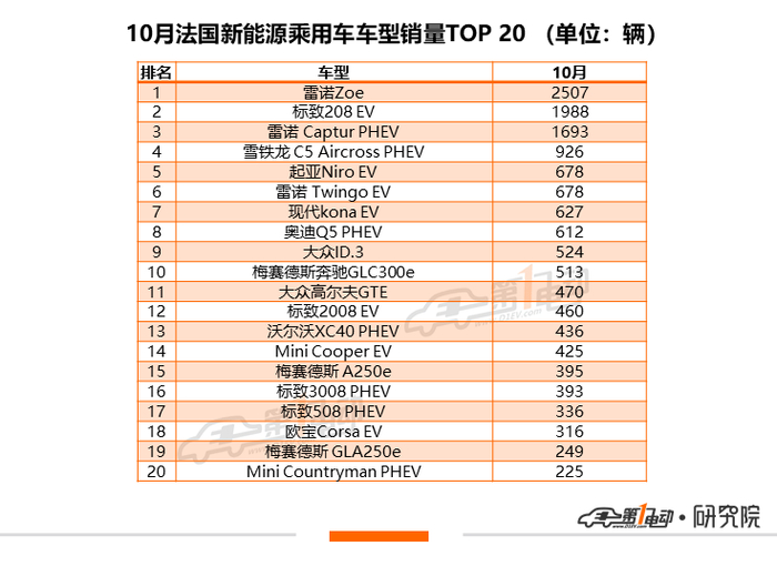 10月另一款雷诺车型Captur PHEV进入榜单,该车型10月销量达2,893辆排名14位,它的入市也帮助雷诺拓宽了迄今为止只拥有Zoe车型的产品线。
