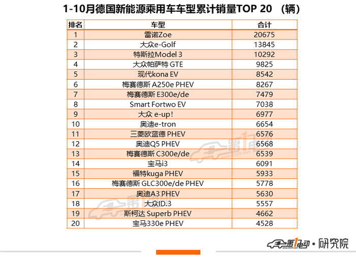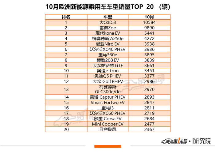 大众ID.3目前虽然在累计销量上没有进入TOP20,但其10月在欧洲市场大发力,总销量达10,584辆,排名单车销量排行第四位。