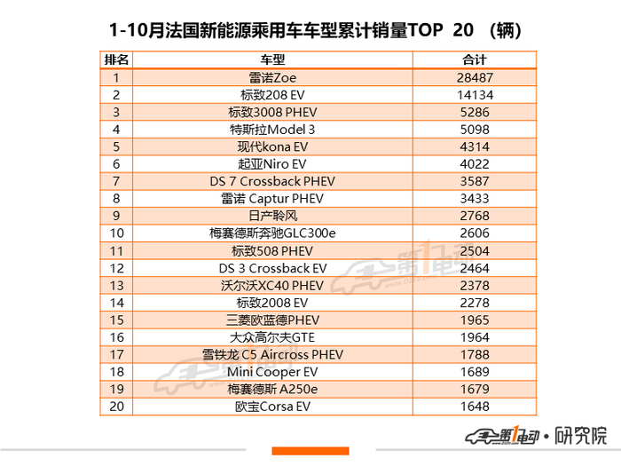 原标题:全球新能源10月榜单:Model 3退出欧洲市场TOP20 来源:第一电动汽车网